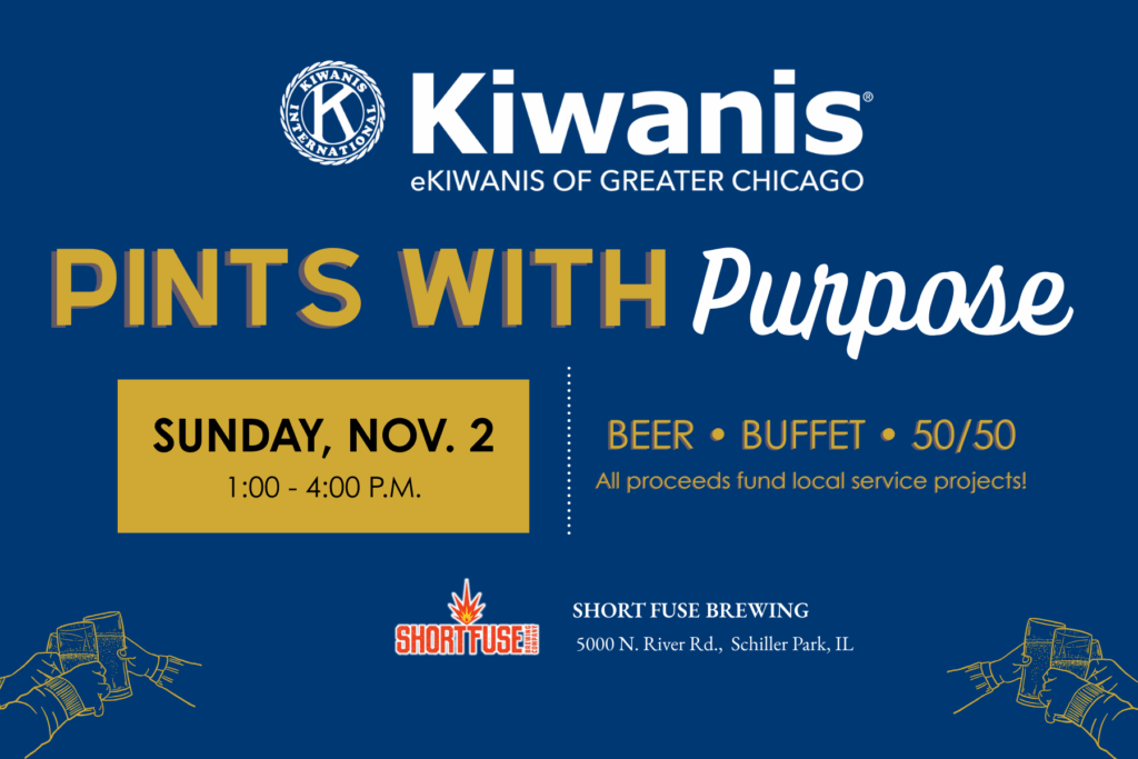 π Sunday, November 2nd π 1:00 - 4:00 p.m. π Short Fuse Brewing, 5000 N. River Rd., Schiller Park, IL β Beer/seltzer, buffet, 50/50, fellowship, and more! ποΈ RSVP needed, visit ekiwanis.org/pints
